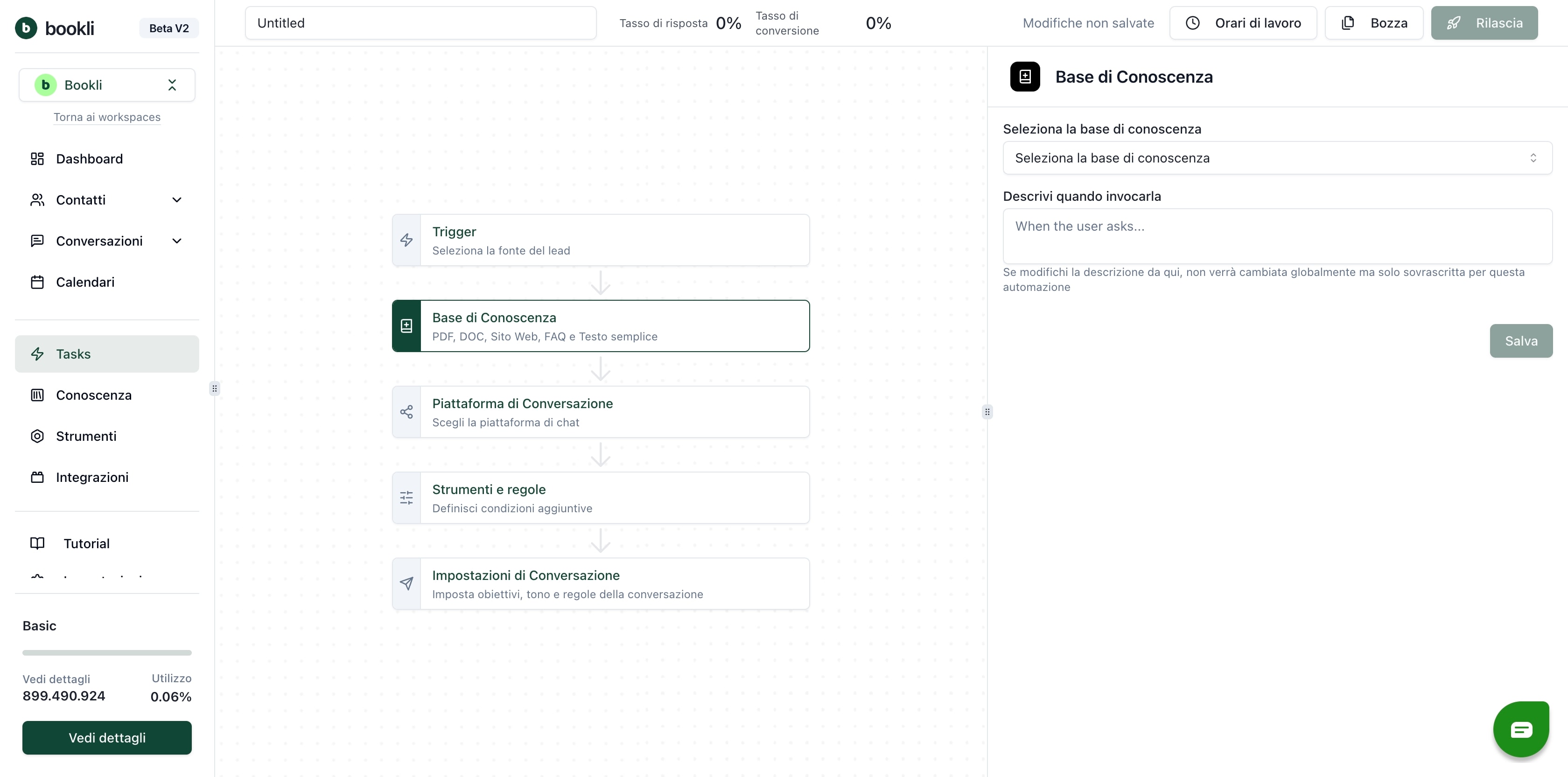 Ogni task può richiamare **una sola base di conoscenza**, anche se puoi crearne e gestirne più di una all’interno della piattaforma.